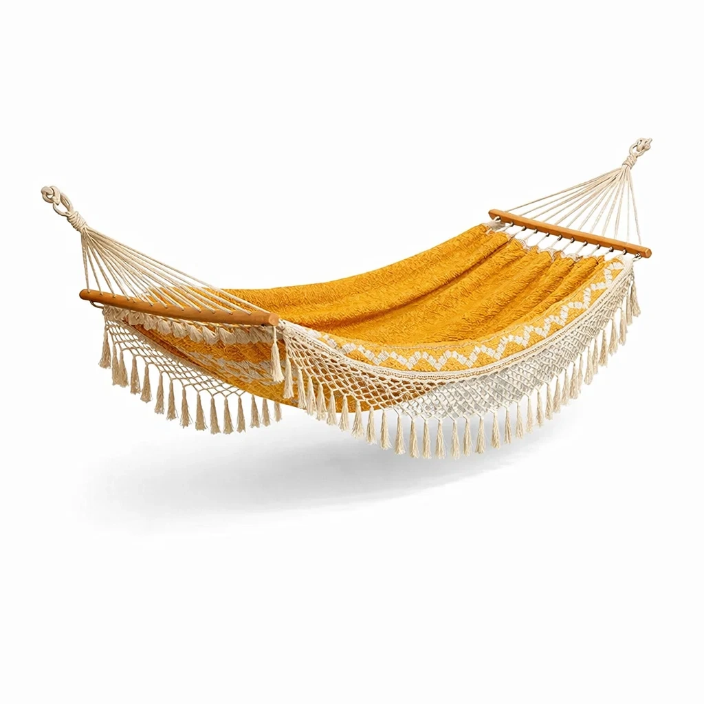 Amaca in Cotone e Legno con Macramè Gialla