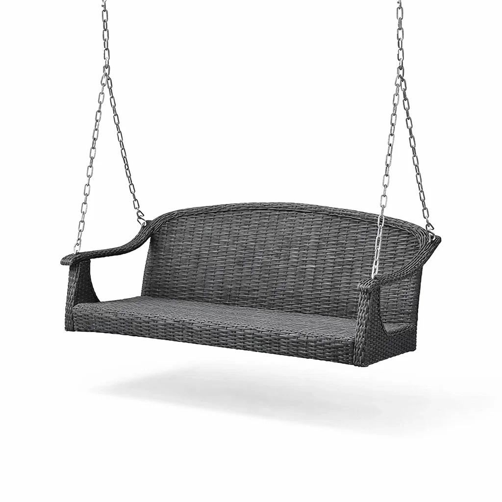 Altalena da veranda in Rattan Sintetico Nero con Struttura in Acciaio