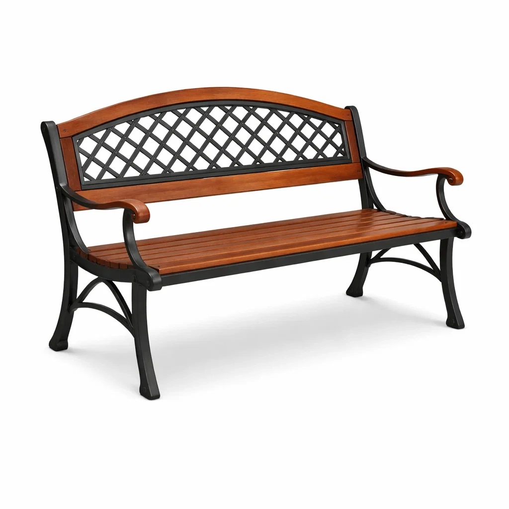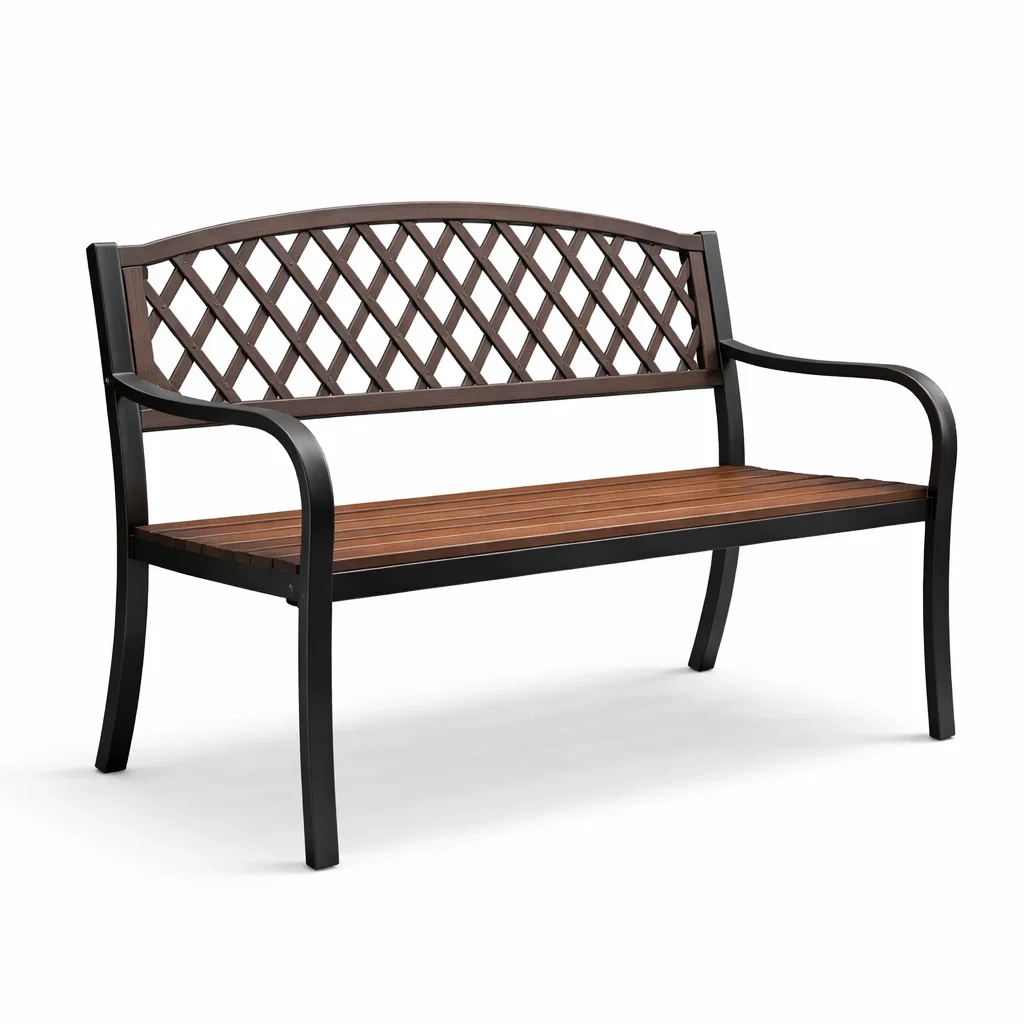Panchina in Metallo e Legno Massello Marrone e Nero per Giardino