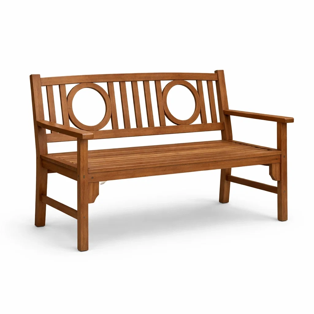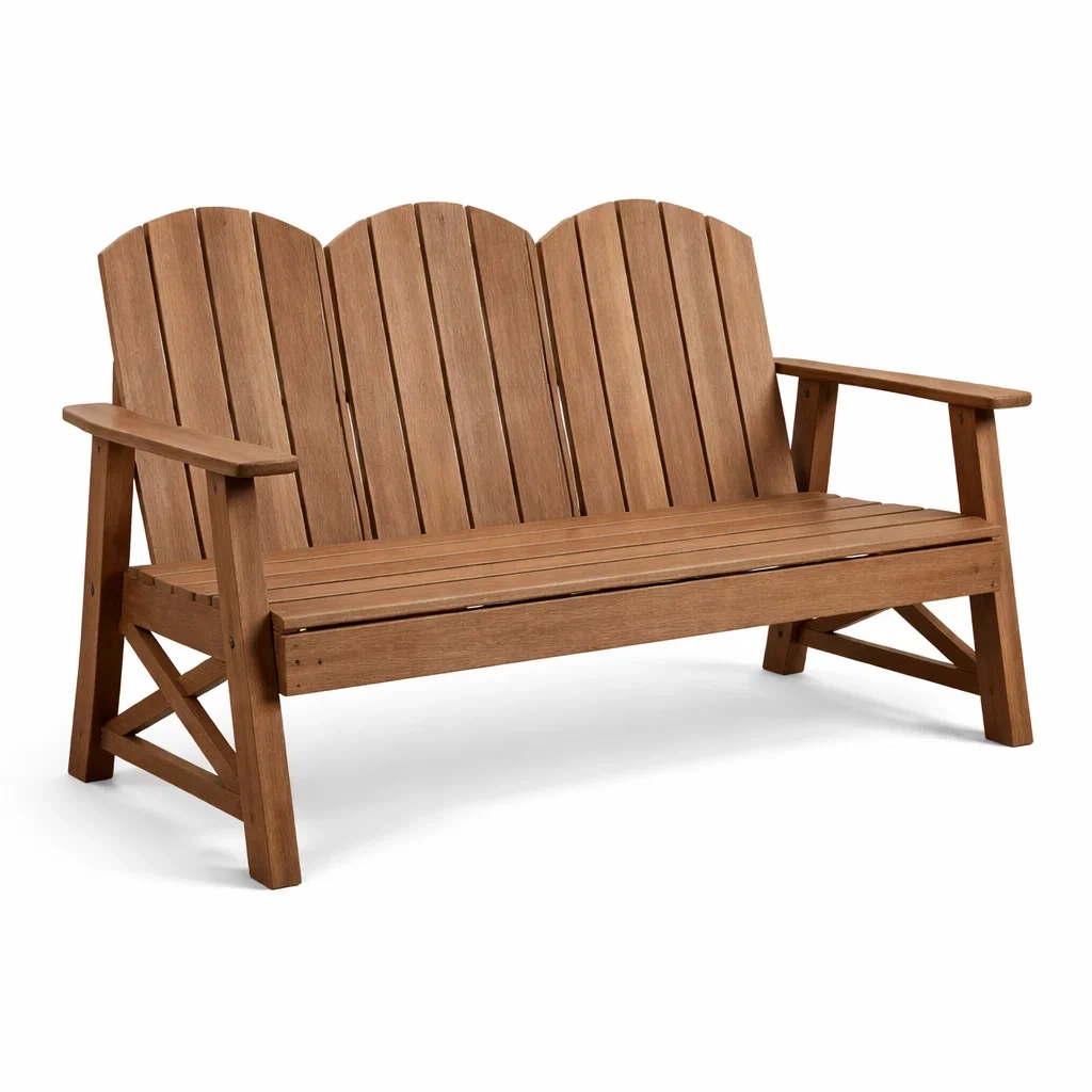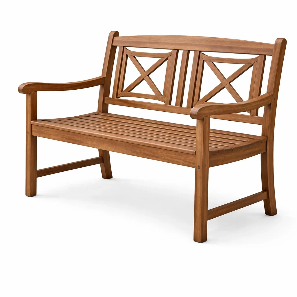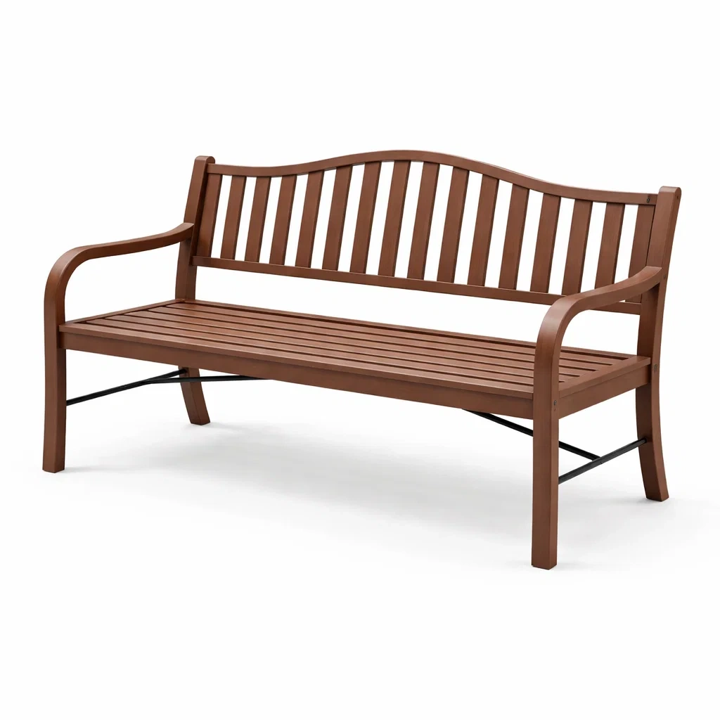 Panchina in Legno di Eucalipto Marrone con Rinforzi in Metallo per Giardino