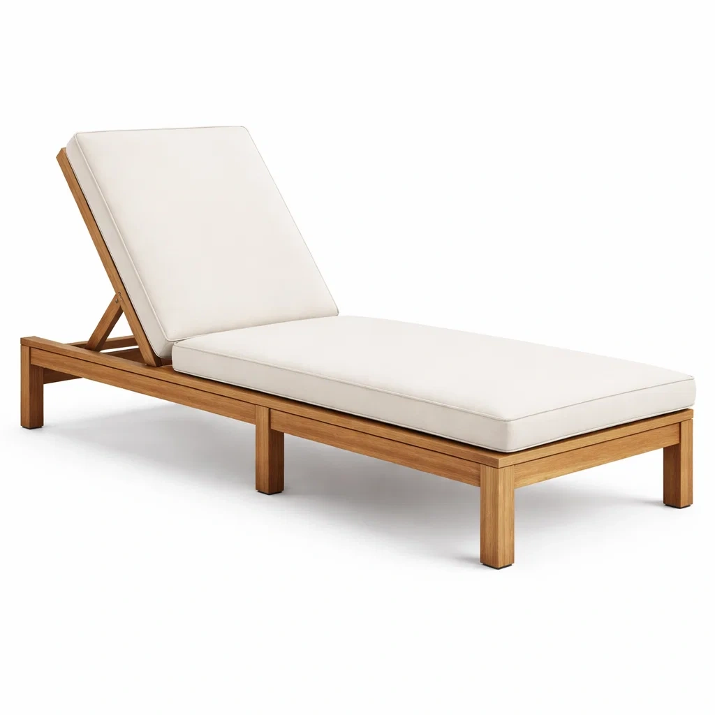 Sdraio in legno massello di teak con cuscini in poliestere crema