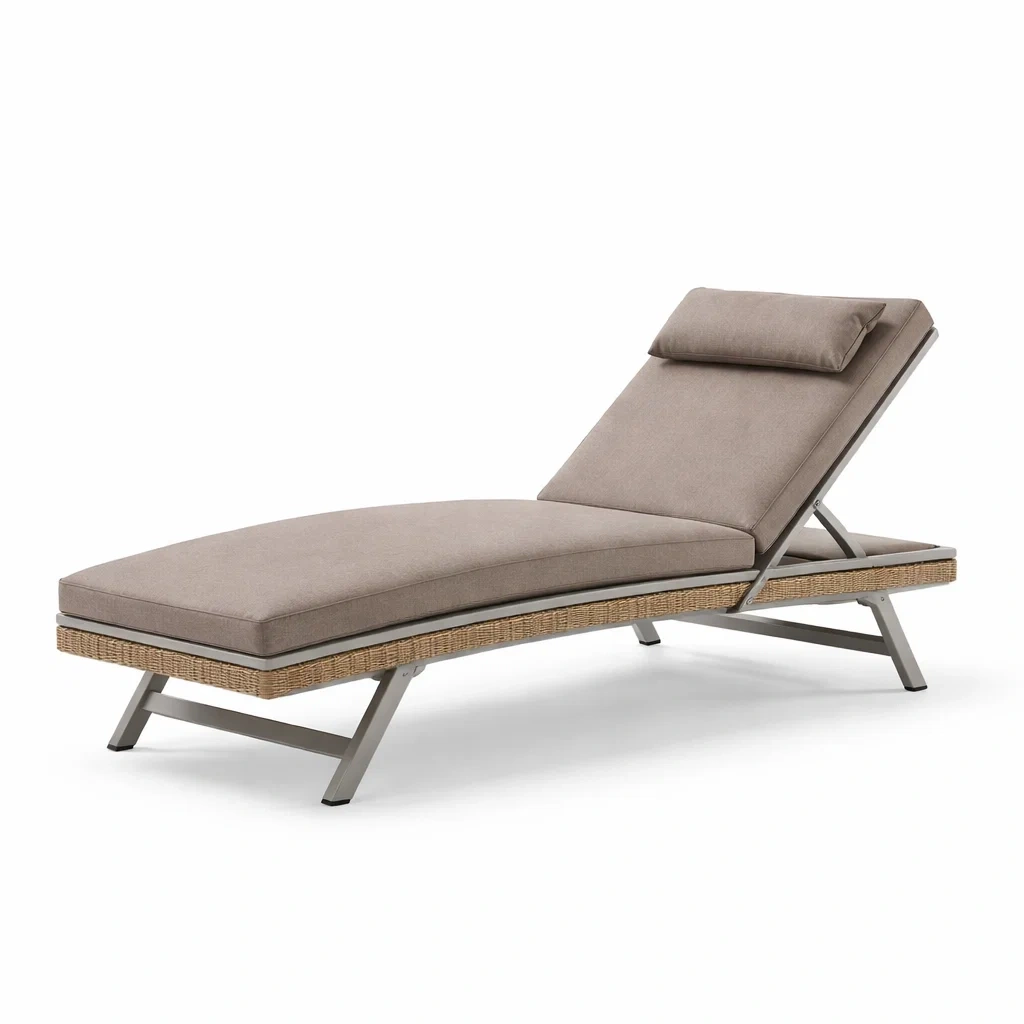Sdraio regolabile in acciaio e legno con cuscino grigio