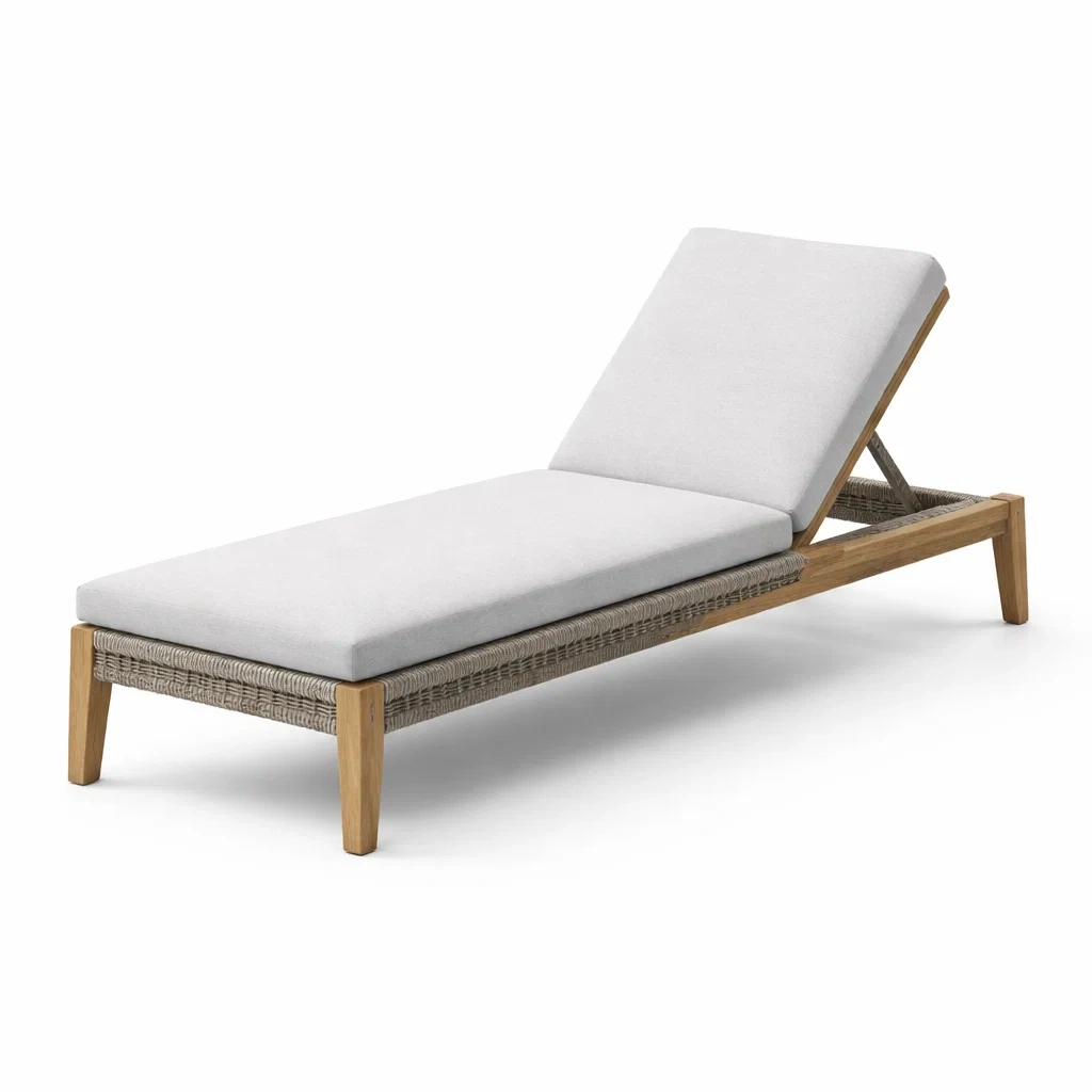 Materiale: Struttura in teak, intreccio in rattan, cuscino in tessuto di poliestere.