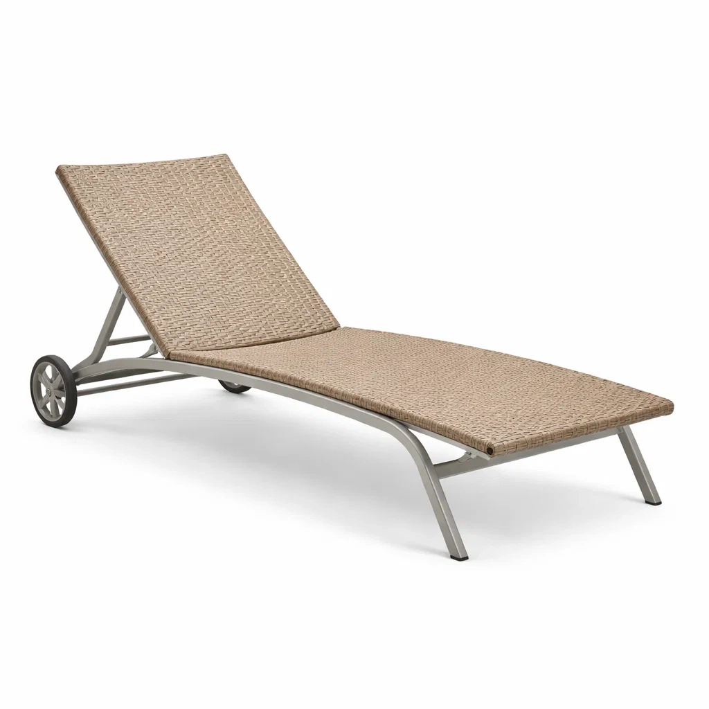 Sdraio in rattan sintetico beige con struttura in alluminio e ruote