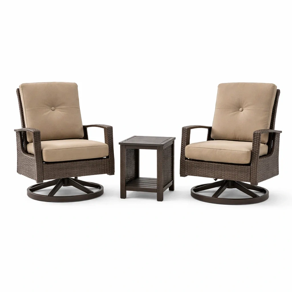 Prodotto multi-componente: 2 sedie girevoli, 1 tavolino.