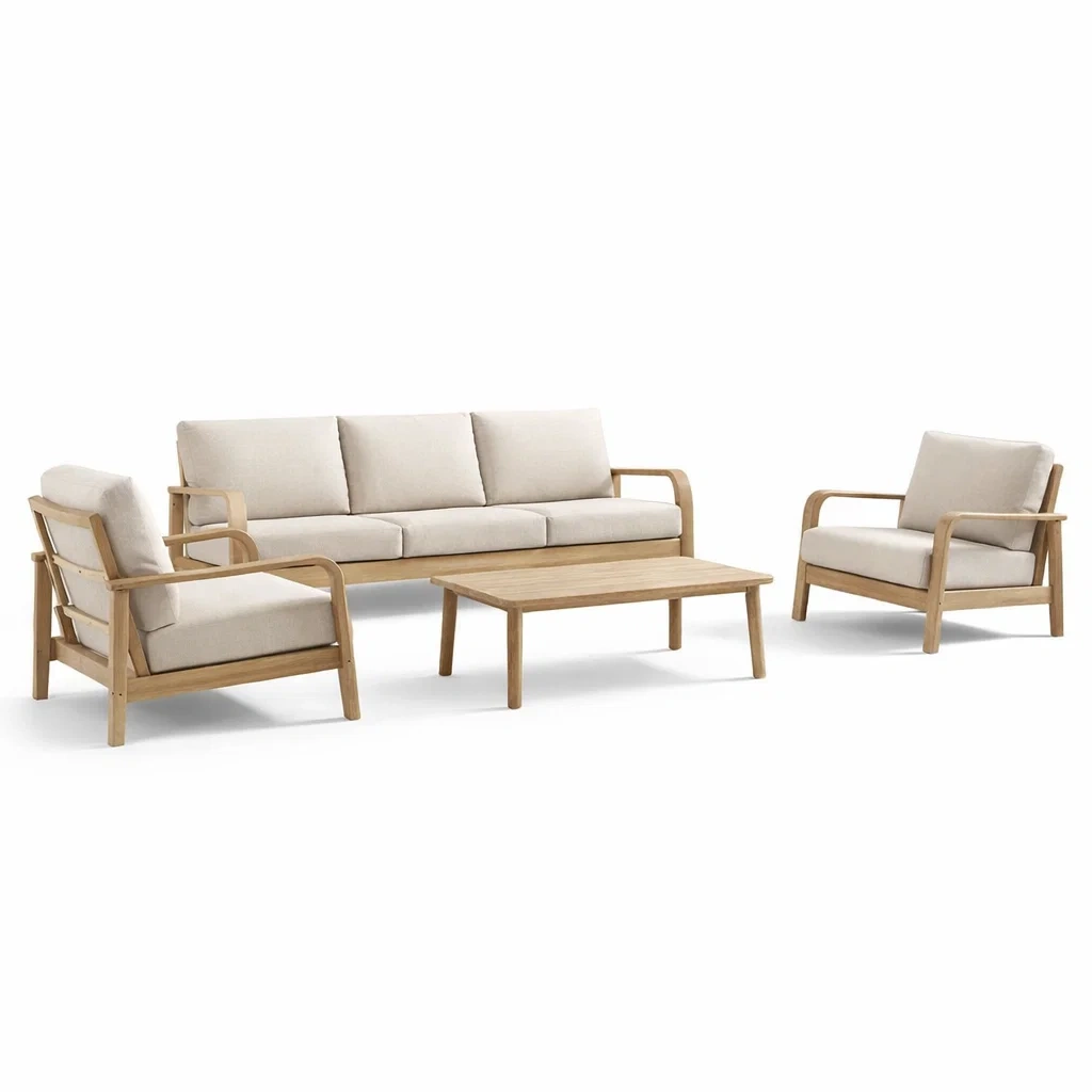 Materiale: Struttura in legno di teak, cuscini in tessuto di poliestere.