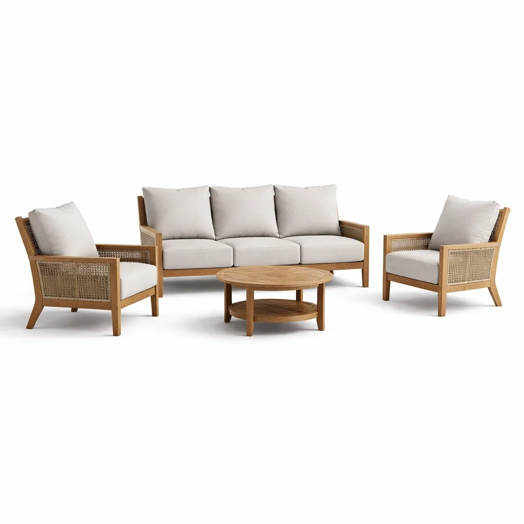 Prodotti inclusi: 1 divano a tre posti, 2 poltrone, 1 tavolino rotondo