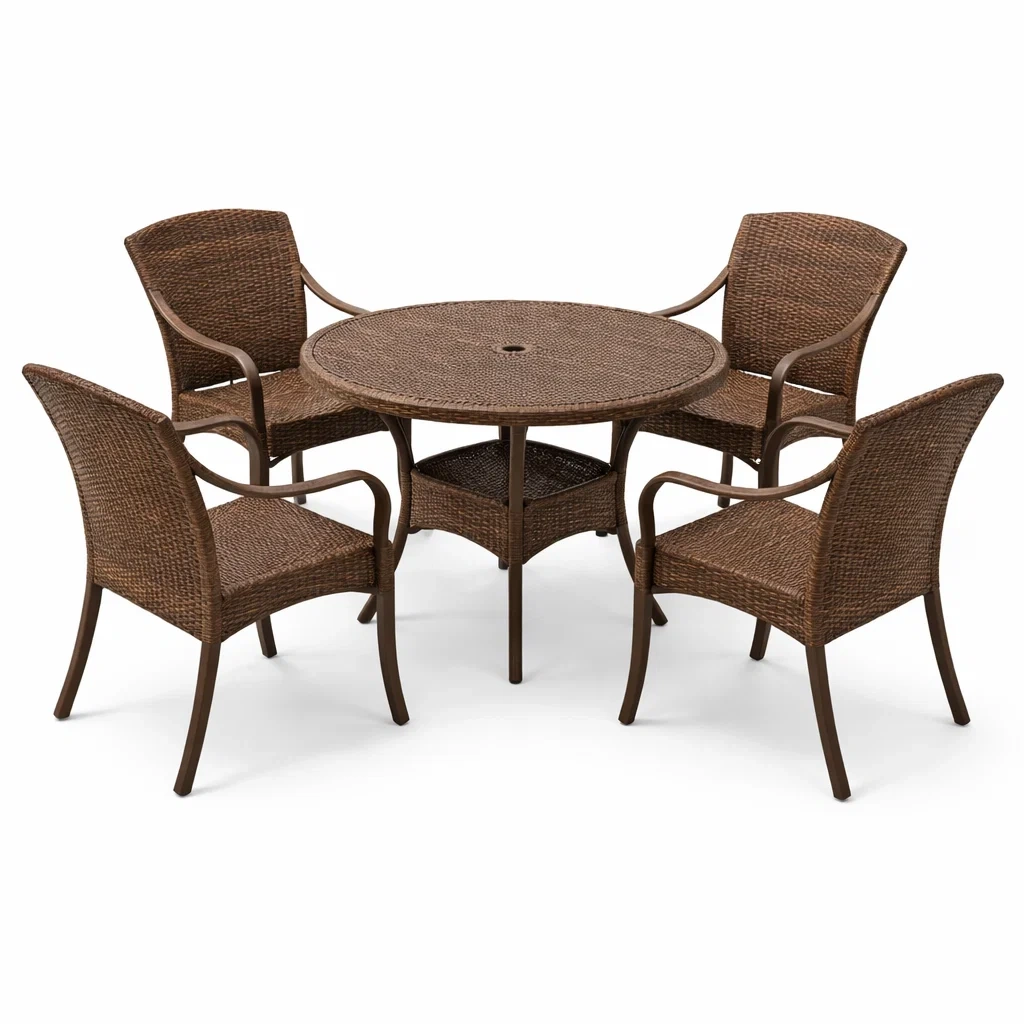 Set tavolo e sedie da giardino con tavolo rotondo e sedie in rattan sintetico marrone